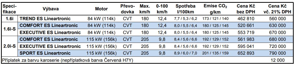 Tři stupně výbavy, dva motory. Základní výbava je bohatá a když si člověk vezme, že má ve standardu automatickou převodovku, která obvykle bývá za příplatek nějakých 40 tisíc korun, pohon všech čtyř kol nebo právě zmíněný bezpečnostně-asistenční systém EyeSight, tak začne chápat i na danou třídu vyšší základní cenu 560 000 Kč. Tady se připlácí prakticky jen za metalízu, pokud chcete, a to 12 000 Kč. Kompletní ceník najdete zde.